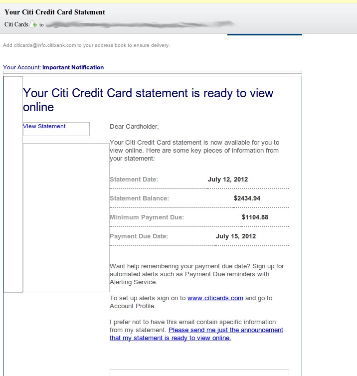 If you’re just sorting through your Email inbox and you notice an outrageous looking Citi Credit Card bill demanding a minimum payment of $1,000.00 or above, keep your cool! The message has a subject line of ‘Your Citi Credit Card Statement‘ and while it might seem like a legitimate Email message, it isn’t.