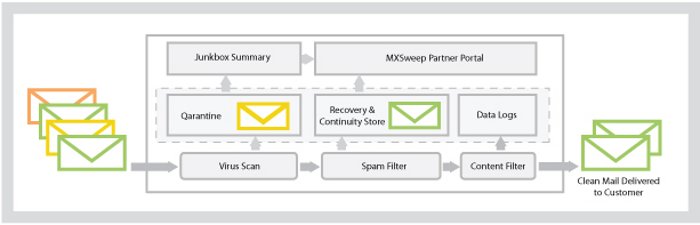 While all of this might seem like a lot to take in, Software as a Service (SaaS) makes it easier than ever for business people to start filtering their incoming Email remotely in a cloud environment and helps protect your physical computer network against malicious Emails that are designed to wreak havoc on it. Please see the image below for a flow chart of how SaaS based Email security services work to protect your valuable business assets 24 hours a day, 7 days a week.