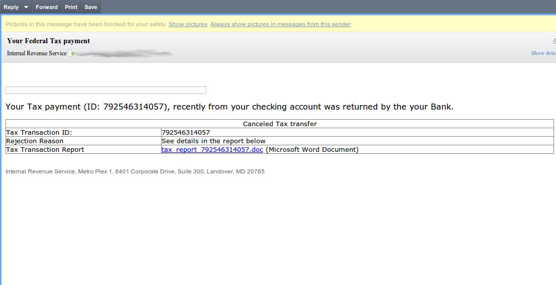 One such Email currently circulating on the Internet is entitled ‘Your Federal Tax Payment‘ and appears to be sent from [email protected].